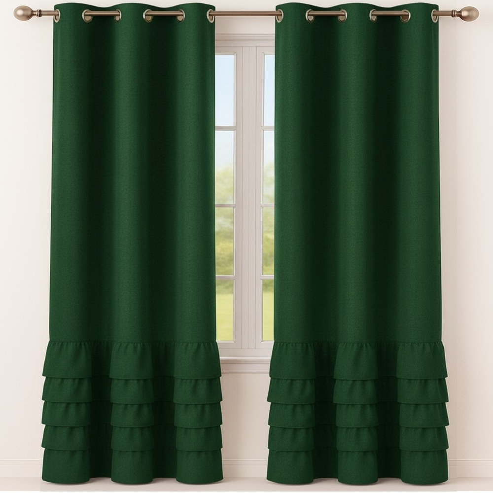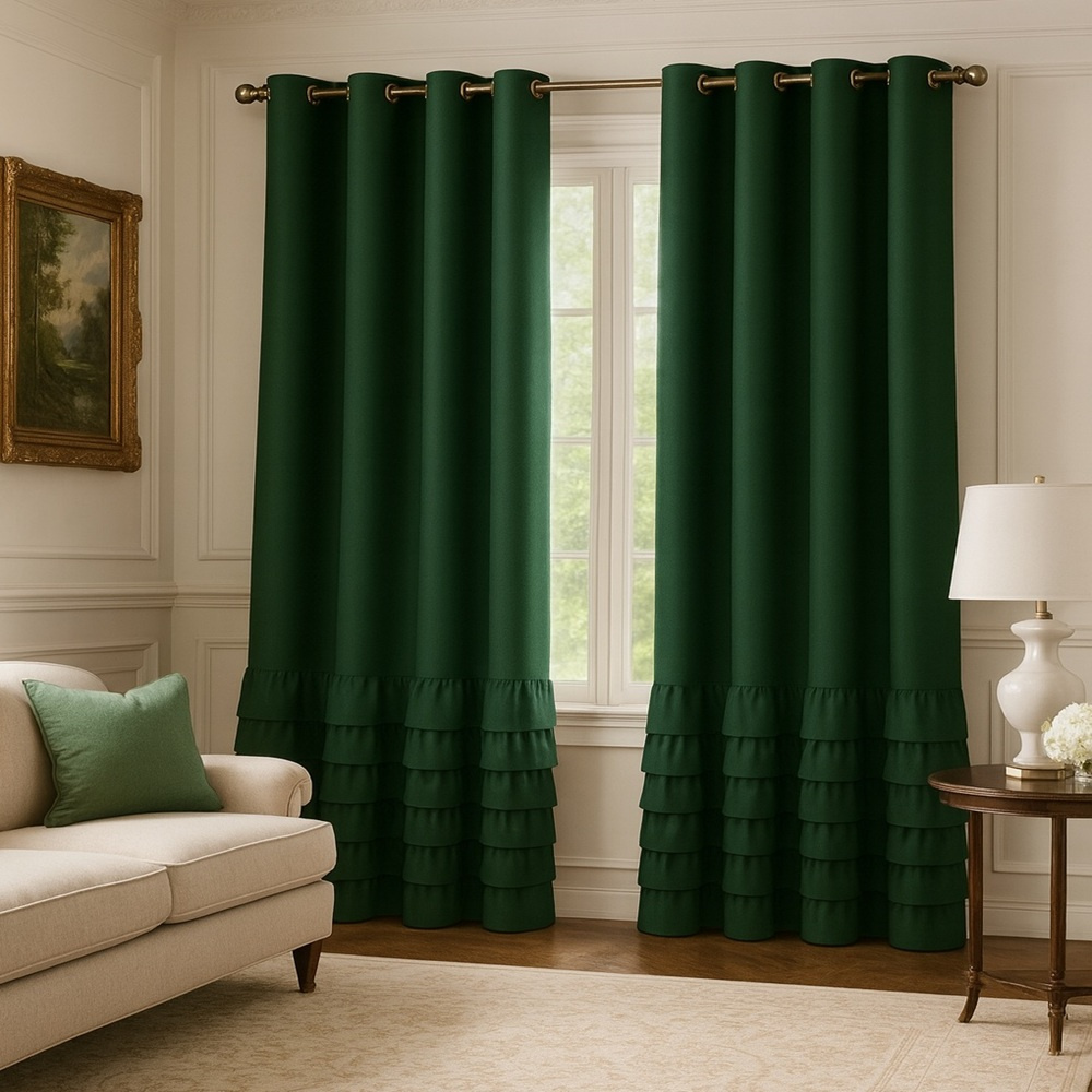 Elegancka zasłona gładka matowa z falbanami Carmen butelkowa zieleń