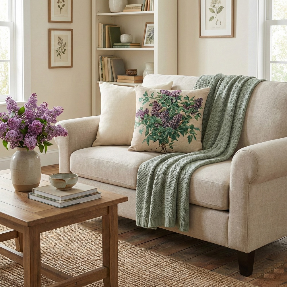 Poszewka dekoracyjna gobelinowa z motywem kwitnącego bzu to elegancki dodatek, który subtelnie podkreśla charakter wnętrza. Wysokiej jakości tkanina gobelinowa wyróżnia się trwałością oraz dekoracyjną, wyrazistą strukturą splotu. Roślinny wzór w odcieniach zieleni i fioletu pięknie komponuje się z jasnym, neutralnym tłem.  Poszewka świetnie sprawdzi się jako dodatek do salonu, sypialni czy pokoju dziecięcego – wystarczy położyć ją na sofie lub fotelu, aby wnętrze nabrało ciepłego charakteru. Motyw inspirowany naturą wprowadza do wnętrza harmonię i świeżość. Produkt idealnie pasuje do stylu klasycznego, boho, rustykalnego oraz prowansalskiego. Starannie wykonane detale podkreślają elegancki i ponadczasowy charakter poszewki. To prosty sposób na szybką metamorfozę wnętrza bez konieczności dużych zmian . Poszewka z motywem bzu będzie również doskonałym pomysłem na stylowy prezent.