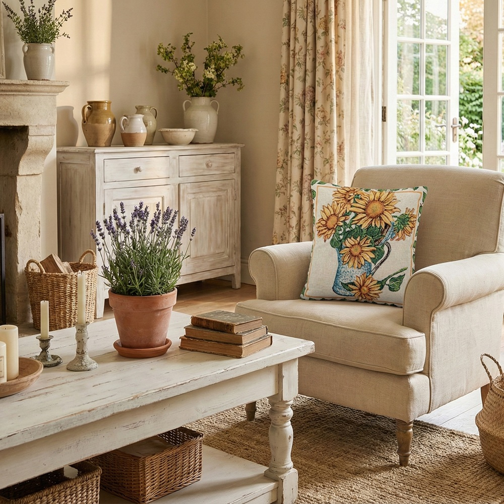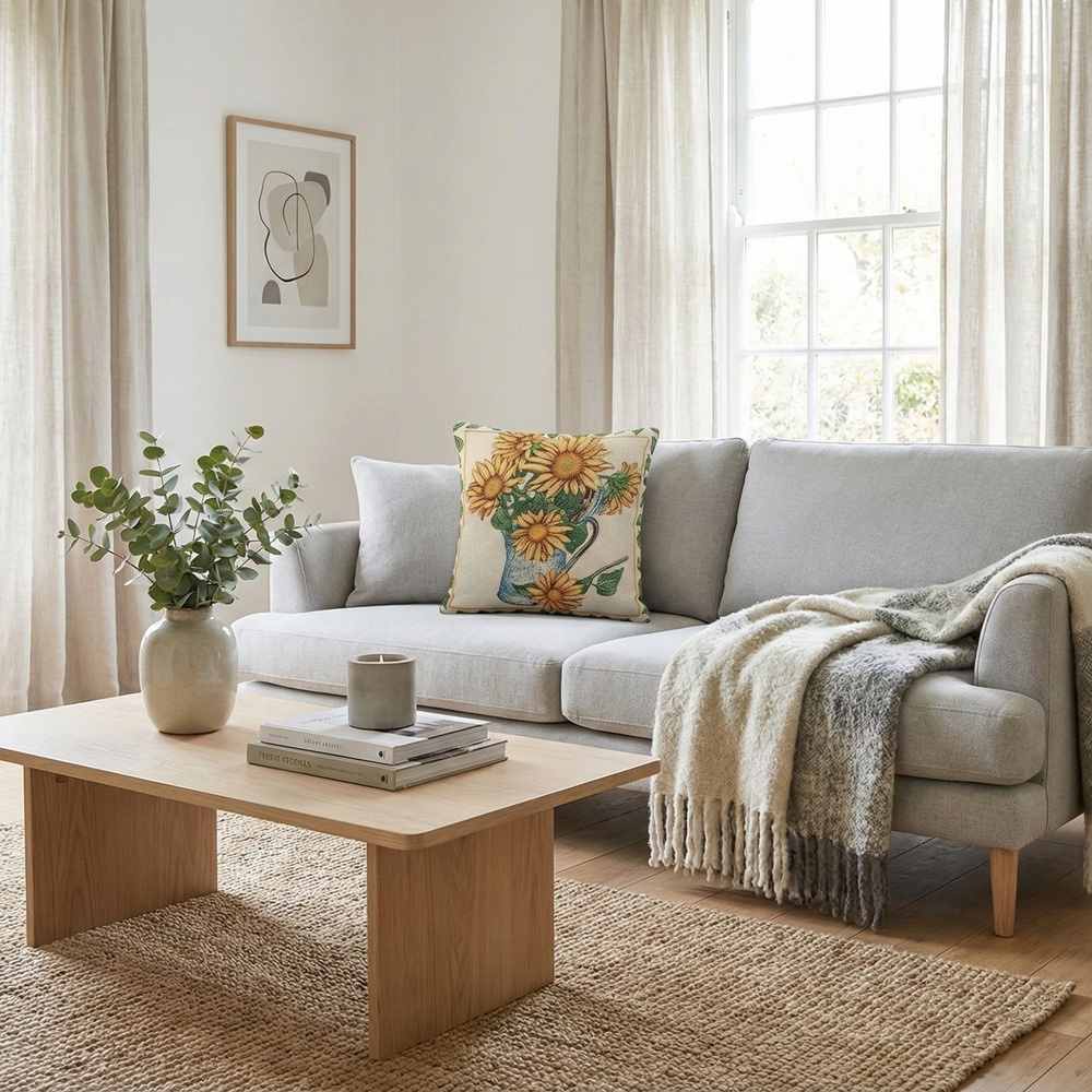 Poszewka dekoracyjna gobelinowa z motywem kwatów słonecznika to elegancki dodatek, który subtelnie podkreśla charakter wnętrza. Wysokiej jakości tkanina gobelinowa wyróżnia się trwałością oraz dekoracyjną, wyrazistą strukturą splotu. Roślinny wzór w odcieniach zieleni i słonecznego pięknie komponuje się z jasnym, neutralnym tłem.  Poszewka świetnie sprawdzi się jako dodatek do salonu, sypialni czy pokoju dziecięcego – wystarczy położyć ją na sofie lub fotelu, aby wnętrze nabrało ciepłego charakteru. Motyw inspirowany naturą wprowadza do wnętrza harmonię i świeżość. Produkt idealnie pasuje do stylu klasycznego, boho, rustykalnego oraz prowansalskiego. Starannie wykonane detale podkreślają elegancki i ponadczasowy charakter poszewki. To prosty sposób na szybką metamorfozę wnętrza bez konieczności dużych zmian . Poszewka z motywem słoneczników będzie również doskonałym pomysłem na stylowy prezent.