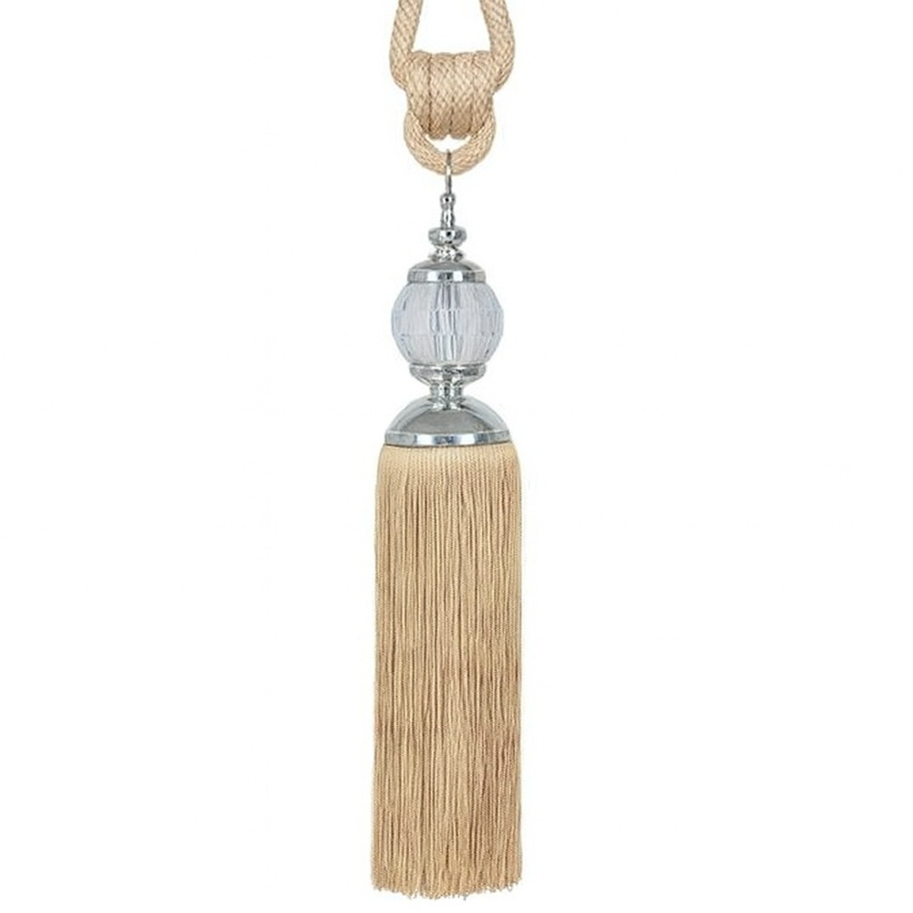 Ekskluzywny chwost do zasłon z kryształem beżowy srebrne wykończenie