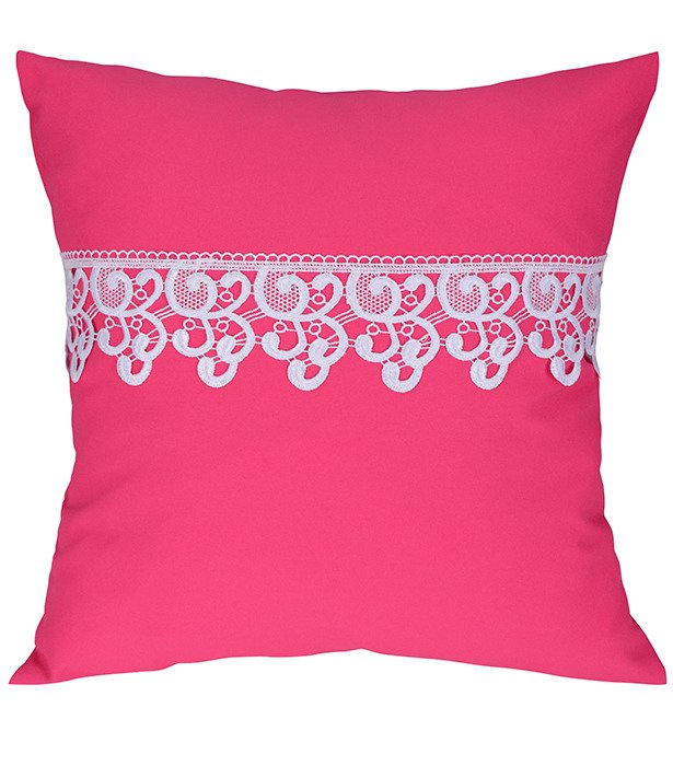Poszewka z tkaniny matowej ozdobiona gipiurą ciemno różowa