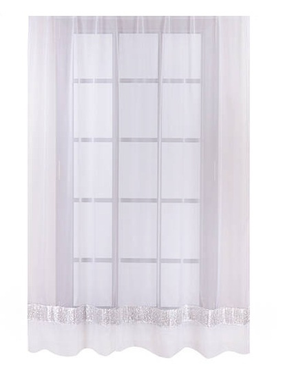 Firana jest uszyta z doskonałej jakości białego woalu, wykończona bogato zdobioną taśmą z pięknie poyskującymi kryształkami w kolorze srebrnym, złotym lub czarnym, Swym nowoczesnym wyglądem podkreśli wnętrze każdego stylowego pomieszczenia, tworząc przy tym subtelny, elegancki wystrój. Jest to idealna propozycja do kolorowych, a także ozdobnych zasłon. Z powodzeniem sprawdzi się w klasycznym jak i nowoczesnym wnętrzu. Dzięki swej strukturze doskonale ozdobi okno dodając wnętrzu niebywałej elegancji oraz niepowtarzalny charakter. Firany ozdobią pokój dzienny, kuchnię, sypialnię, a nawet pokój dziecka. Dodadzą blasku i odmienią mieszkanie.