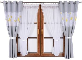 Komplet zasłony jasno szare duo listki C2 dwa kokony z woalu Cindy 3