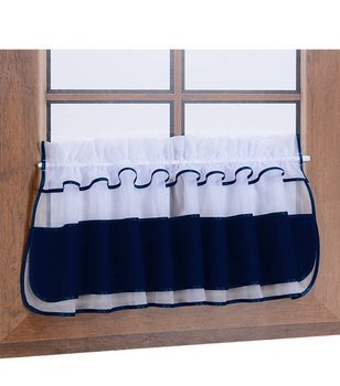 Zazdrostka z woalu i tkaniny matowej granatowa Bari z falbanką