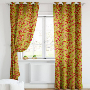 ( ilość produktów: 1221 )Zasłona seledynowa w wzory Rubi różowe drobne kwiaty łączka wzór J7