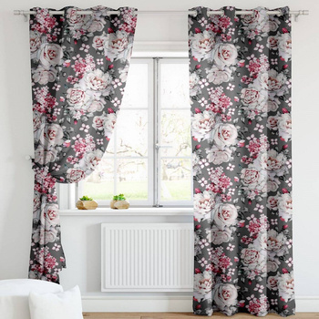 Stylowa zasłona duo grafitowa z pasem na górze ciemno różowym Massa