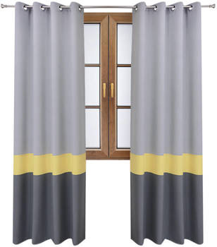 Zasłona gładka matowa trio Sally szara z jaskrawym żółtym