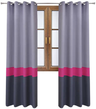 Zasłona gładka matowa trio Sally szara z jasnym różowym