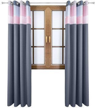 Zasłona gładka matowa trio Sally szara z jasnym różowym