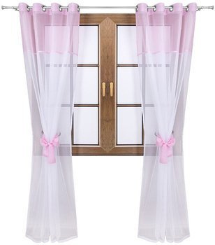 Firana dwukolorowa z woalu wiązana Lethien biało-jasnoróżowa