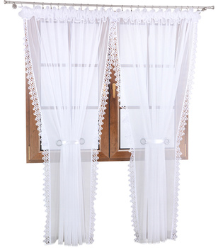 ( ilość produktów: 3062 )Elegancka firana z białego woalu ozdobiona gipiurą Bella Sale S46