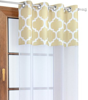 Firana duo z białego woalu i tkaniny w beżowe maroko Rubi 3 wzór A3