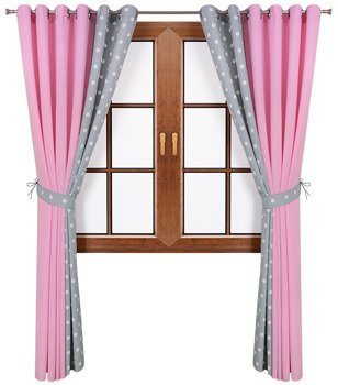 Zasłona jasno różowa z podwiązką duo kropki Areta wzór 5 groszki