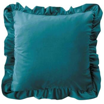 Urocza poszewka welurowa aksamitna z falbanami na poduszkę turkusowa