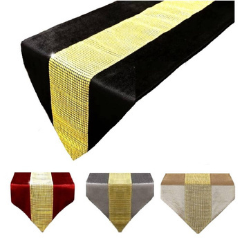 Elegancki bieżnik welurowy aksamitny na stół ławę ozdobiony złotą cyrkonią kolory
