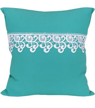 Poszewka z tkaniny matowej ozdobiona gipiurą jasno turkusowa
