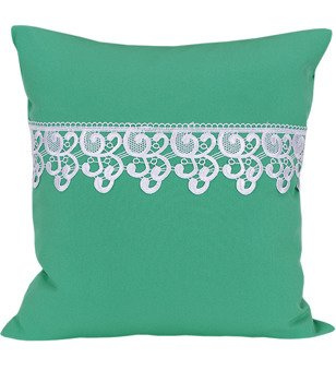 Poszewka z tkaniny matowej ozdobiona gipiurą jaskrawo zielona